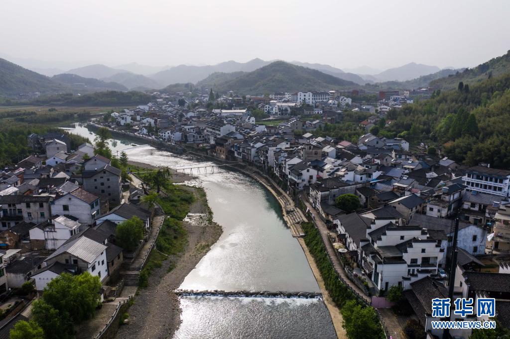 这是河桥古镇一角(4月17日摄,无人机照片)。新华社记者 徐昱 摄