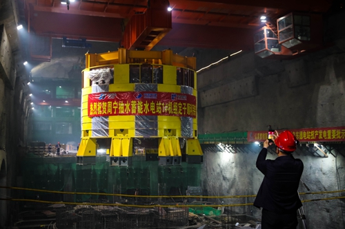 4月20日下午3点整,位于福建省宁德市七步镇境内的周宁抽水蓄能电站地下厂房里响起一声吊装的号令声。375米,是这座深藏在山体内部地下空间的最大深度。