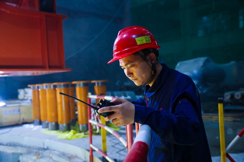 “按预定计划实施定子吊装作业!”对讲机的另一头,是电站地下厂房土建及机电安装项目部经理余深明,现场他向工区内的工人发出了启动吊装的信号。