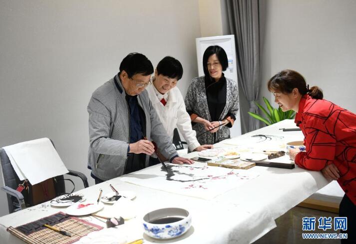 4月24日,在浔南社区幸福邻里中心,居民在志愿者沈嘉允(左一)的指导下学习画画。 浙江省湖州市南浔区浔南社区幸福邻里中心于2021年1月建成,总面积约1600平方米。中心设有书画室、居家养老服务中心、百姓健身房、城市书房等活动场所,还开设了瑜伽班等各类课程,成为当地居民休闲娱乐的好去处。 新华社记者 金良快 摄