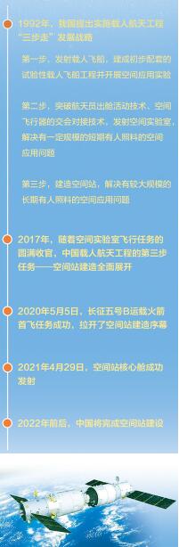 从发射载人飞船将航天员送入太空,到太空出舱、发射空间实验室,中国载人航天工程先后用6艘载人飞船、5艘无人飞船、一艘货运飞船、一个目标飞行器和一个空间实验室,支持11名中国航天员、14人次完成多趟太空之旅。环环相扣,循序渐进,正是通过历次“神舟”和“天宫”飞行任务,先后突破掌握了天地往返、太空出舱、交会对接等关键技术,为空间站铺就了一条稳妥可靠的建造之路。