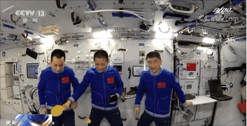 采访中,三名航天员介绍说,在空间站核心舱的两个多月的时间,紧张忙碌的工作之余,业余生活也是丰富多彩。