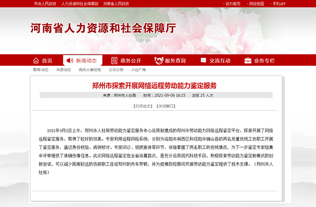 河南郑州市探索开展网络远程劳动能力鉴定服务