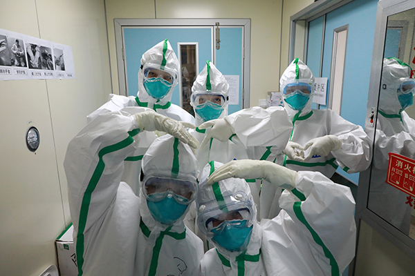 2020年1月30日,海军军医大学医疗队重症监护室医护人员在进入ICU前合影。新华社发 陈晨 摄 这些历史瞬间,都是“我”和我的祖国共同经历的故事。