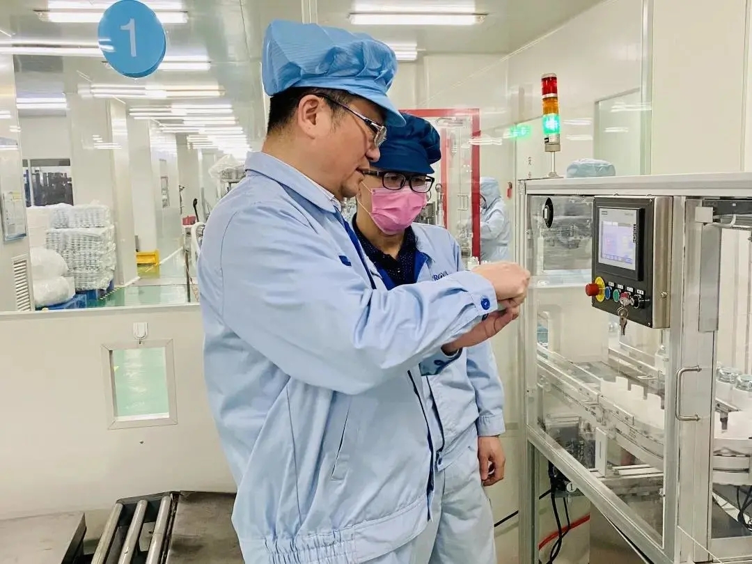 王建荣(左)检验设备运行情况 王建荣说,他一直把全力打造“资源节约型和环境友好型”的世界级化妆品工厂作为自己的职业目标,在企业改革创新、转型升级的发展道路上,环保与发展完全可以并行不悖。