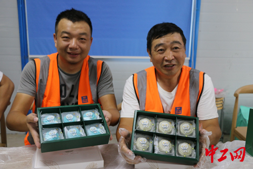 中秋更怀乡,佳节倍思亲。寄出的一盒盒月饼,携带者建设者浓浓的思念和深深的祝福,飘至远方,飘入亲人心中。(中铁北京工程局 司睿)