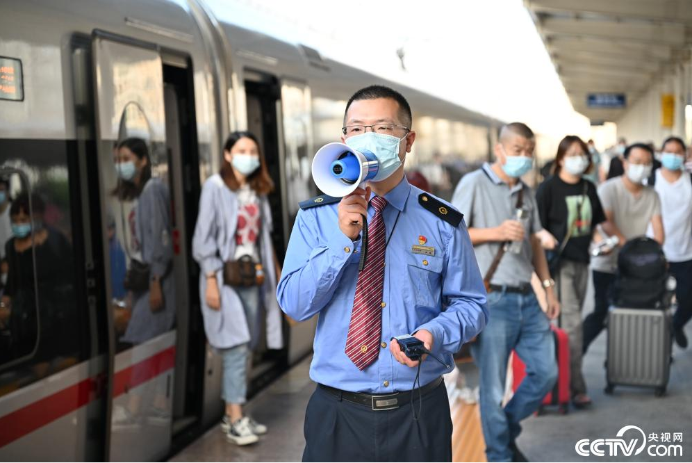 国庆假期,绵阳站列车开行密度进一步加大,130多趟列车停靠,几乎隔几分钟就有一趟列车进站。忙起来的时候,罗亮和同事们甚至没有间隙到站台上的值守室喝口水。他们一直等候在站台上,随时注意着旅客的动向,劝告旅客不要太靠近轨道。一旦列车远远地准备进站,他们要吹响口哨,给旅客示警。