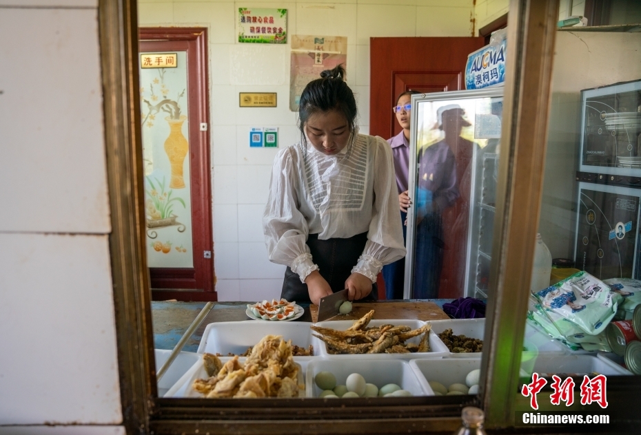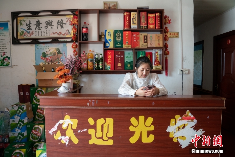 陈恒花在自家经营的饭店前台等着食客们到来。史春阳 摄