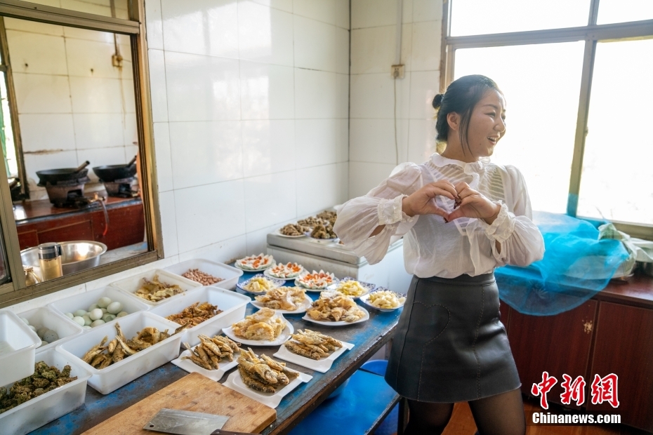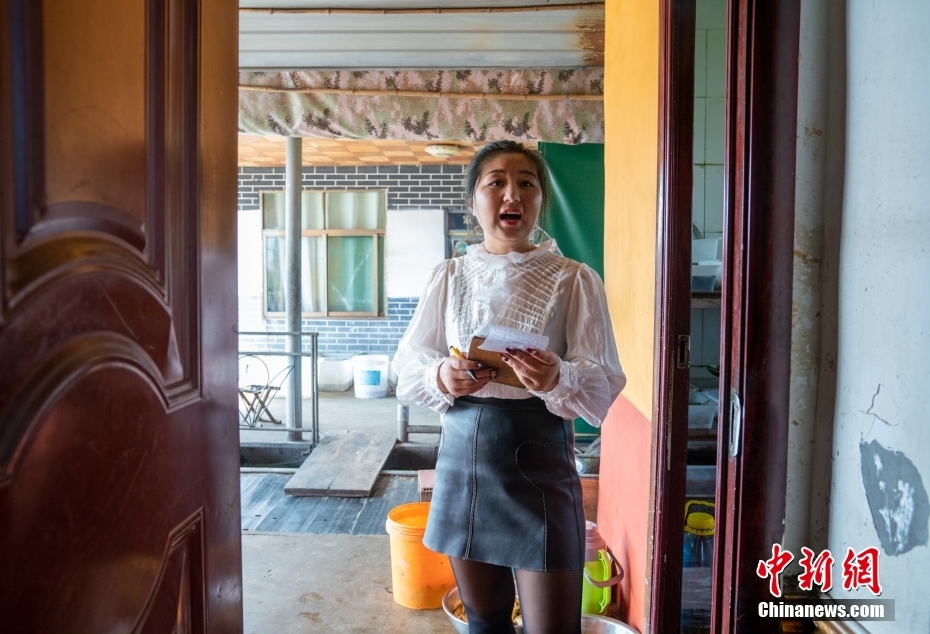 陈恒花在自家经营的饭店后厨录制短视频。史春阳 摄