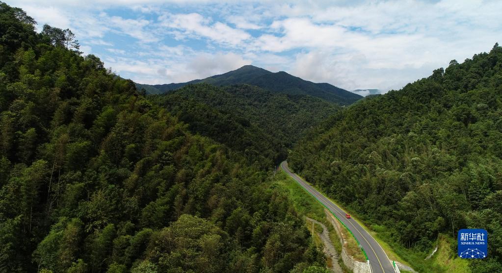9月29日,双峰邮政所的邮递员吴文清驾车行驶在送货途中(无人机照片)。