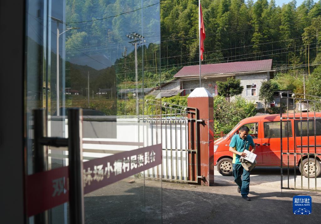 10月6日,双峰邮政所的邮递员吴文清即将离开邮政所,为村民送货。