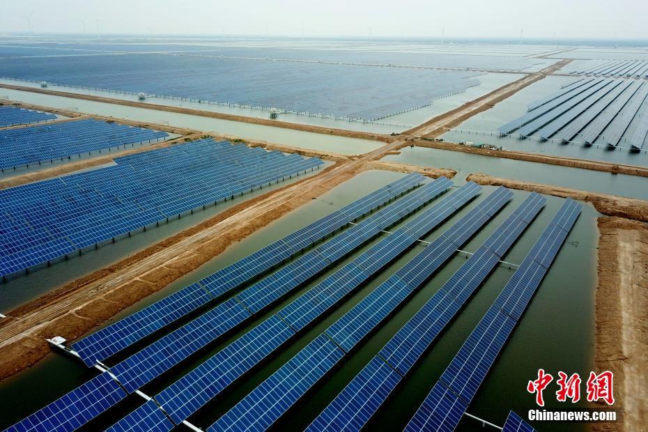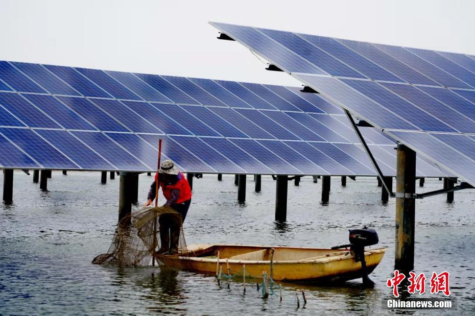 “渔”“盐”是滨海镇的优势产业。滨海镇不断优化土地资源配置,为拓宽增收致富渠道,拉动乡村振兴发展,提高土地亩均效益,立体开发了北部沿海5.3万亩水面。整合“风、光、渔、溴、盐”资源,大力探索光伏发电、风力发电、水产养殖、海水提溴、海水晒盐的资源利用,形成了“上风中光下渔底盐”的“绿色产业链”。已初具规模的光伏发电,水中养虾、海水晒盐的立体循环、碳中和绿色经济发展模式。赵树宴 摄