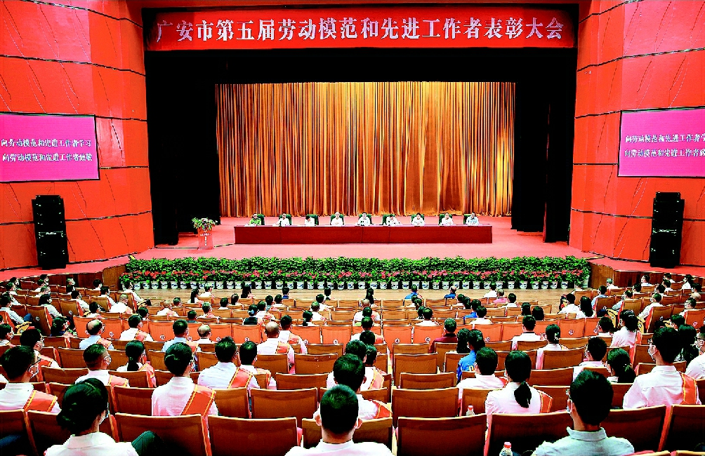 广安市总工会供图 会上,广安市委、市政府决定授予刘军等60名同志“广安市第五届劳动模范”称号,授予梁思全等40名同志“广安市第五届先进工作者”称号,希望受到表彰的劳动模范和先进工作者珍惜荣誉,再接再厉,继续发扬“爱岗敬业、争创一流、艰苦奋斗、敢于创新、淡泊名利、甘于奉献”的劳模精神,再创佳绩,再立新功。希望全市广大劳动者以他们为榜样,大力弘扬劳模精神、劳动精神、工匠精神,积极营造“劳动最光荣、劳动最崇高、劳动最伟大、 劳动最美丽”的浓厚氛围,自觉在劳动中展现“永远跟党走,奋进新征程”的价值担当,以实际行动庆祝建党100周年,为争创成渝地区双城经济圈建设示范市,建设美丽繁荣和谐广安作出应有贡献。