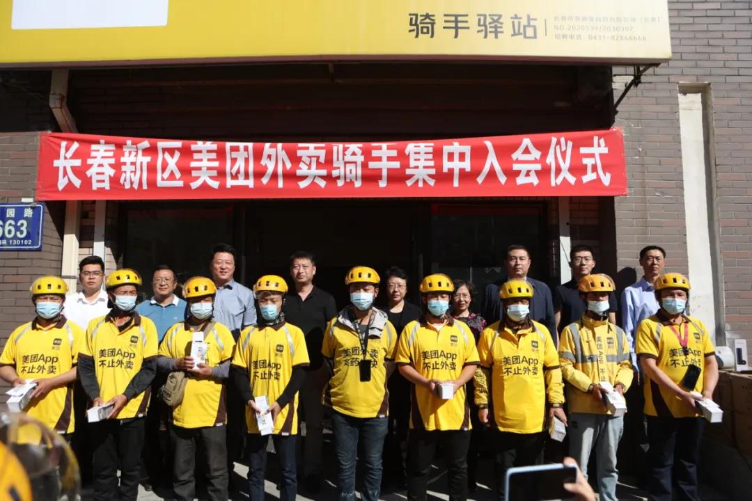 中工网讯 据吉林省总工会微信公众号消息,9月17日,在吉林省总工会蹲点组的积极指导和推动下,长春新区美团外卖骑手集中入会仪式在美团北湖二站举行。省总工会副主席邹艳秋(挂职)及吉林省总工会蹲点组、长春市总工会蹲点组,长春新区总工会相关同志,长春市奔跑兔商贸有限公司总经理李伟,长春新区的美团骑手代表共60人参加仪式。