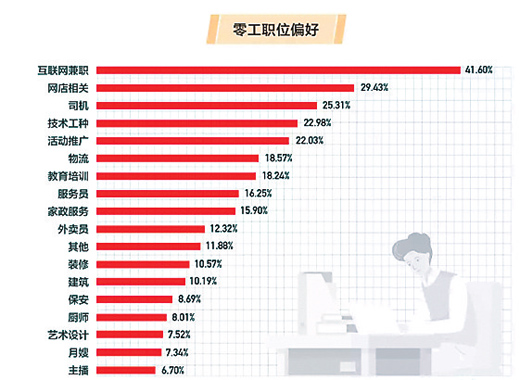 “平台成为‘零工经济’中劳动力提供方与需求方对接的媒介,实现供需快速匹配。”西北政法大学商学院副教授张夏恒认为,这是大批具有供应能力、劳动时间与技能的劳动者偏好打“零工”的重要原因。