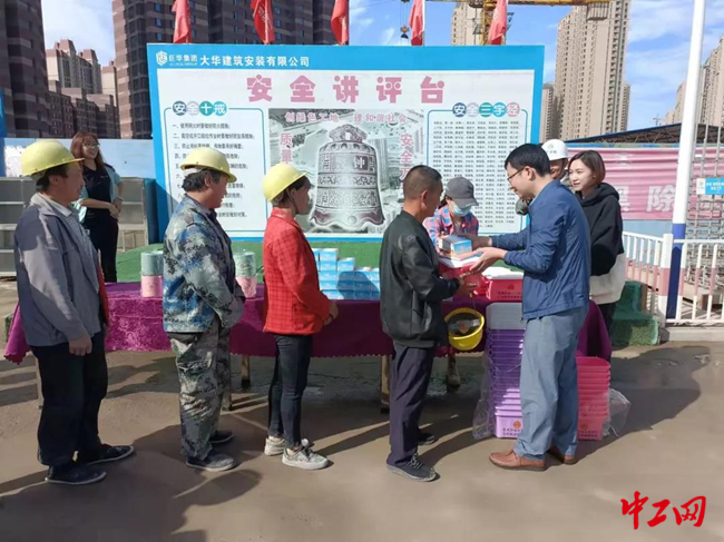 这次宣传活动共编印发放《安全生产宣传资料》《劳动法关于安全生产及劳动保护相关规定》《建筑工地安全防护措施》《农牧民工手册》等宣传单、宣传册200余份,活动现场还为职工发放了收纳盒、纸巾等生活用品,以表达工会组织对建筑工人的关心和慰问。