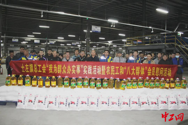 中工网讯 近日,内蒙古呼和浩特市土默特左旗总工会深入内蒙古德邦物流有限责任公司开展“我为群众办实事”实践活动暨农民工和“八大群体”会员慰问活动,为159名快递员送上价值1.5万余元的白面、食用油慰问品。