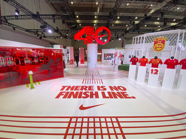 本届进博会上,耐克公司以“40 FOR 40 - 耐克中国四十周年主题展览”的形式,全面展现其深耕中国市场,与中国体育事业共成长的精彩历程。以不同的内容形式讲述了耐克与中国体育运动事业携手前行的生动故事,并记录了不同年代与耐克合作过的著名运动员、行业伙伴、大型活动等难忘时刻。