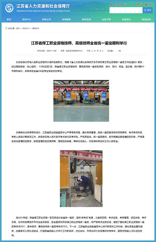 江苏省焊工职业资格技师、高级技师全省统一鉴定顺利举行