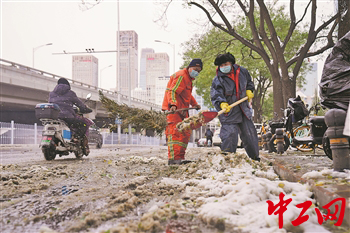 风雪寒潮迎立冬 户外清扫作业忙