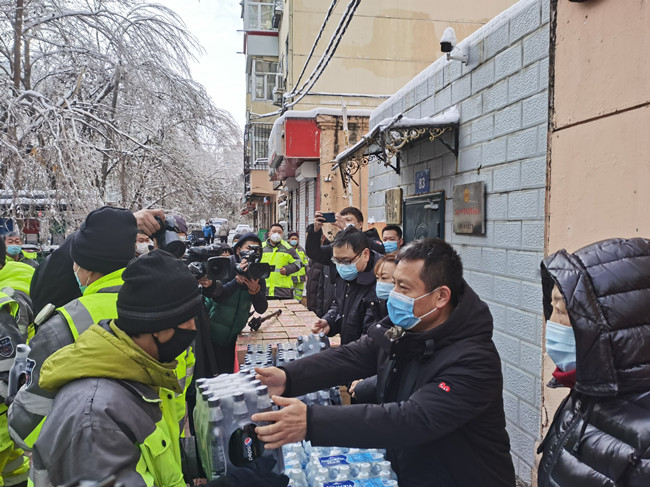 近日寒潮来袭、雨雪交加,罕见的暴雪给黑龙江省哈尔滨道里区城区道路交通带来严重影响。道里区总工会携手爱心企业,向奋战在清雪一线的环卫职工送去奶茶、可乐、方便面等食品,送上了区委、区政府及工会组织的慰问。