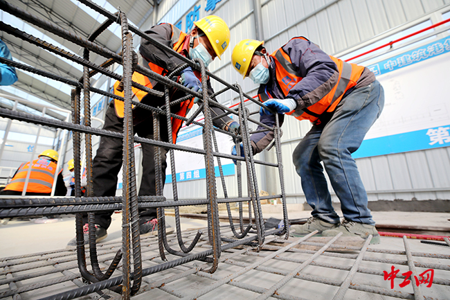中工网讯 11月30日,安徽省淮北市总工会、淮北市交通运输局在濉溪县临涣船闸建设工地举办“扬匠心 筑品质”劳动和职业技能竞赛。现场,来自船闸建设工地的50多名产业工人就钢筋绑扎、模板安装、风险辩识等技能项目进行比拼。