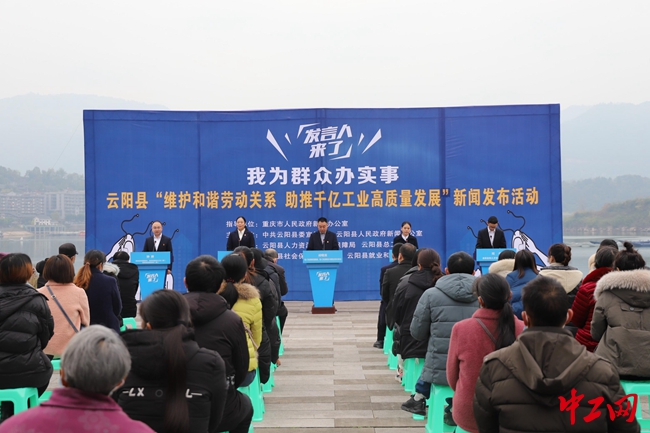 中工网讯近日,重庆云阳县总工会协同县人社局、县就业和人才中心、县社保中心,在该县人和街道立新社区广场地举办了以“维护和谐劳动关系 助推千亿工业高质量发展”为主题的“我为群众办实事”新闻发布活动。该县工业园区企业职工代表及群众代表等100余人参加。
