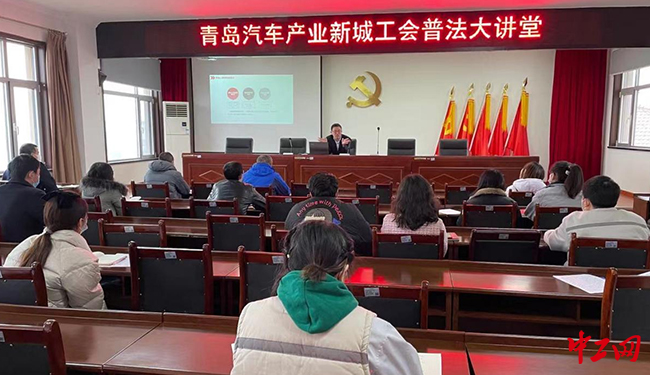 中工网讯 12月17日,山东省青岛市即墨区青岛汽车产业新城工会举办“普法大讲堂”活动,各企业工会主席、职工代表40余人参加了此次活动。