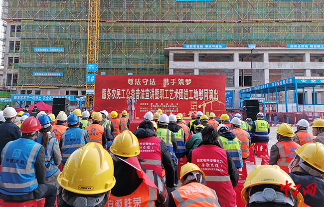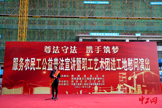 中工网讯 近日,安徽省合肥市肥西县总工会来到中建公司肥西县中医院新区建设项目工地,开展2021年“尊法守法·携手筑梦”服务农民工公益法律服务活动。