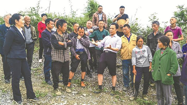 2019年4月,张明富到大坎村介上组宣讲十九大精神