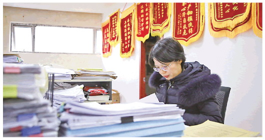 王惠在会议室里查阅文书。舒天楚摄 给弱势群体打“免费官司”
