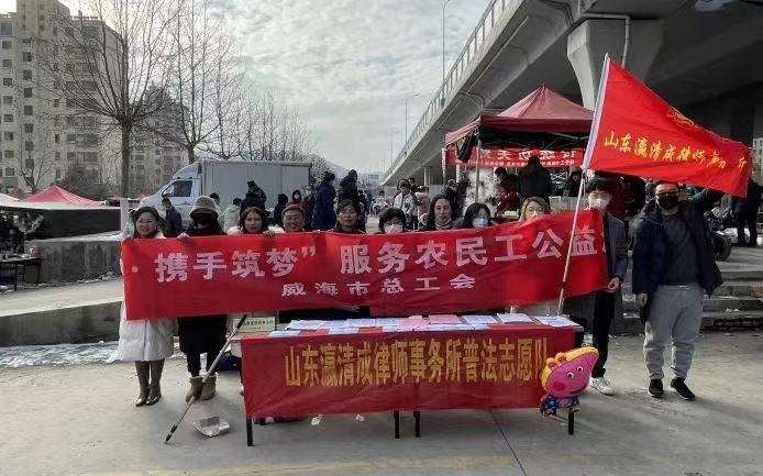 这是威海市总工会连续第三年到农村大集现场送法,通过接地气的送法普法活动,为更多基层职工群众提供了优质的公益法律服务,在帮助他们更好尊法、学法、守法、用法,维护自身的合法权益中发挥了积极作用。