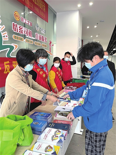 职工们正在法治宣传摊位前领取法治宣传资料 许接英/摄 活动现场,法治宣传讲座气氛活跃,引起热烈讨论。花都“暖企”法律服务律师团的律师代表结合各类实际案例,用通俗易懂的语言为快递员讲解《快递员从业风险与防范》。区委政法委、区司法局、区总工会、花山镇总工会、禁毒办等相关部门专门设置了法治宣传摊位,重点宣传《宪法》《工会法》《劳动法》等法律法规,旨在增强新就业形态劳动者的法治意识和自我维权能力,共发放各类法律法规宣传资料1000余册。