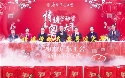 据悉,2022年春节期间,广东各级工会将投入3.5亿余元开展“情暖劳动者·喜粤过大年”新春行动,通过“粤工惠”APP网络平台或快递到家方式,向全省在粤过年和踏上归途的劳动者赠送千万份购物券包、百万份慰问年货、十万张景点门票、万盘盆菜、万只烧鹅、万箱鱼汤、万张电影票、万份错峰返乡车票补贴、万套春联围巾、万个保温杯及文体康养套票等新春礼包,预计将惠及1000多万名一线异地务工人员。