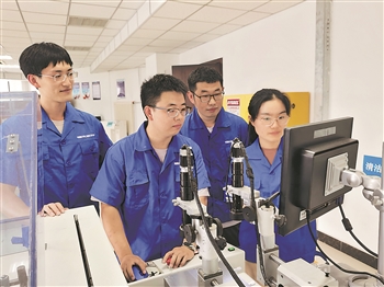 团队成员操作印刷设备调试工艺参数。张丽娟 摄 茅塞顿开 |