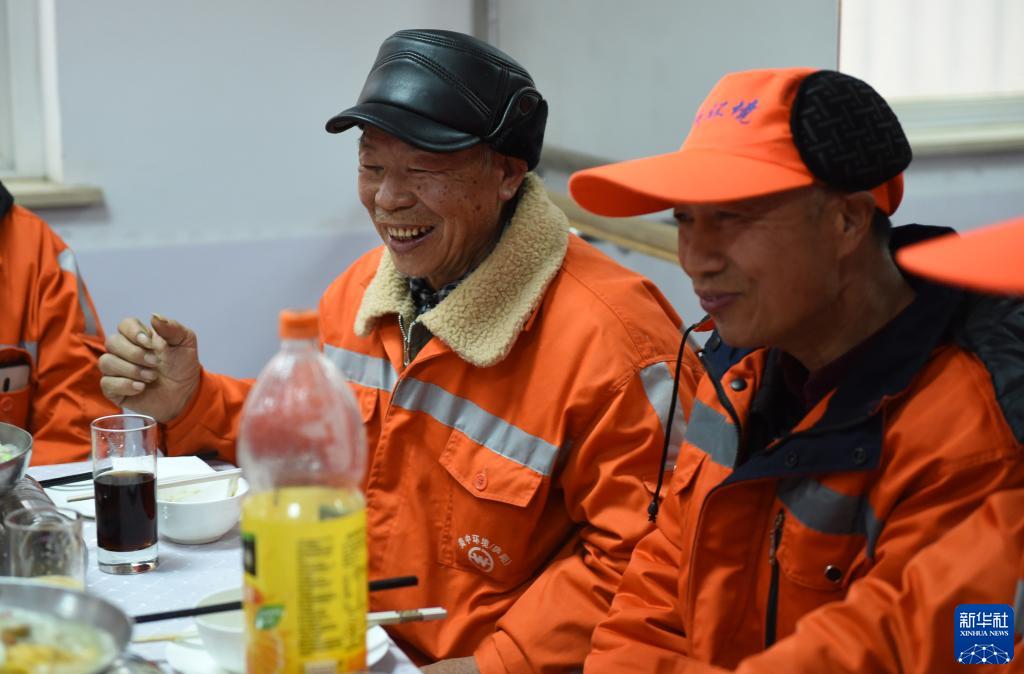 团圆饭温暖留守环卫工人