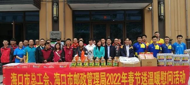此外,为进一步推进“工会进万家·新就业形态劳动者温暖行动”,海口市总工会联合海口市邮政管理局开展2022年春节期间“送温暖”活动,到顺丰工会户外劳动者服务站点,看望慰问坚守春节投递岗位的快递员,向45名来自邮政、顺丰、中通等多家快递企业的快递员代表嘘寒问暖,把党和工会组织的关怀与温暖带给大家,并表示,各级工会尤其是快递企业工会积极做好春节期间职工的维权服务工作,尽力帮助快递职工安排好节日期间的工作和生活,最后向大家送上慰问品和节日祝福。