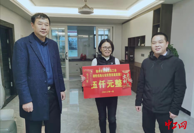 中工网讯(工人日报-中工网记者王晓颖 通讯员谢蓉)为把党和政府的关怀、工会组织的温暖及时送到广大公安民警心坎上,1月27日,江西省赣州市定南县总工会常务副主席叶伟华对因公牺牲的民警家属进行了慰问,并为每个家庭发放5000元慰问金。