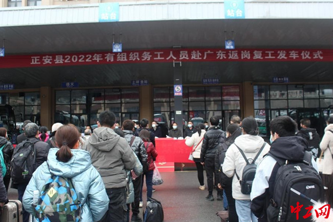 2月7日,贵州省遵义市正安县举行“正安县2022年有组织务工人员赴广东返岗复工发车仪式”。活动为此次外出务工的80余名农民工送去工会准备的价值2300余元的慰问品,正安县总工会还为农民工们宣传了工会的职能,并叮嘱农民工合法权益受到侵犯时积极寻求工会帮助。