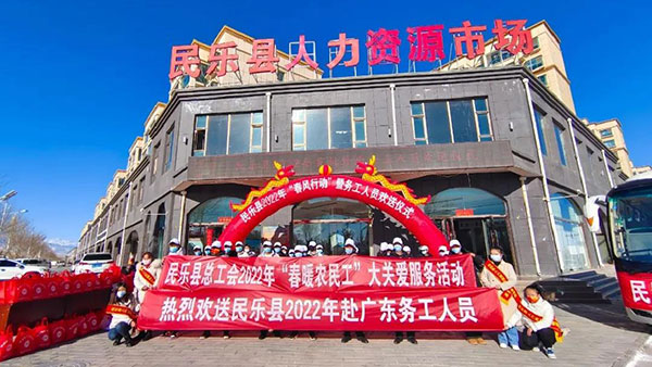 中工网讯 据甘肃省张掖市总工会微信公众号消息,2月9日,甘肃省张掖市民乐县总工会联合县人社局在县人力资源市场举办了全县2022年“春风行动”暨务工人员欢送仪式。
