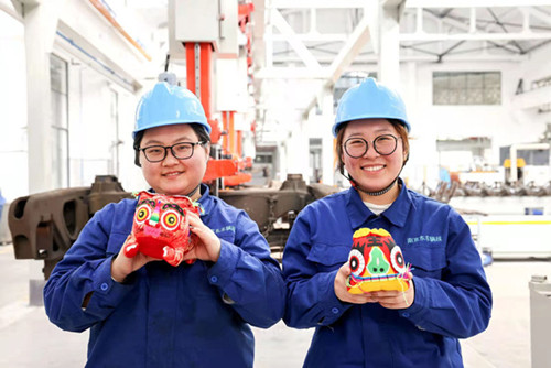 如虎添翼 2月7日节后开工第一天,中国铁路南京东车辆段徐州北检修车间两名1998年生的“虎妞”青工,在新建成的工艺线前和该段退休职工郭贯男亲手做的“布老虎”合影留念。听说车间工艺线智能化改造完成,郭贯男特意赶制了一批“纸老虎”“布老虎”送来,希望新的工艺线能让大伙工作如虎添翼。(马红旗 余爱国)