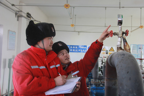 虎兄虎弟 2月1日,正月初一。上午10点,虎年第一天的朝阳映照着大漠,但室外的气温还是很低,西北油田采油一厂采油管理三区沙72计转站,员工赵慧、邹雨锋正忙得不亦乐乎。“我俩生肖都属虎,同样24岁,只不过赵慧生在年头,我在年尾,他是‘虎兄’,我算‘虎弟’。这是我俩在岗位上度过的第一个春节。”邹雨锋说。(吴佳妮 张开拓)