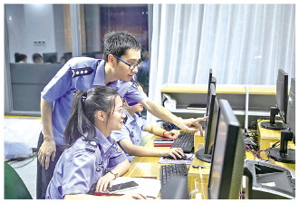 赵琦铖指导学员提升平面设计技能。 在刚刚过去的第二个中国人民警察节当天,一个由交通、治安、刑事、铁路、经济、禁毒等十多个警种274人构成的“能”字,在长兴县公安局大院内闪闪发光,这个画面也在浙江省公安厅制作的警察节宣传视频中成为压轴镜头。 |