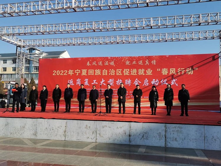 新华网银川2月15日电(记者 谢建雯)15日,宁夏石嘴山市惠农区举办了2022年宁夏回族自治区促进就业“春风行动”返岗复工大型招聘会启动仪式,针对受疫情影响的就业困难人员、返乡农民工、脱贫人口、边缘易致贫人口、高校毕业生等重点群体,解决其“求职难”和企业“招工难”“稳工难”。
