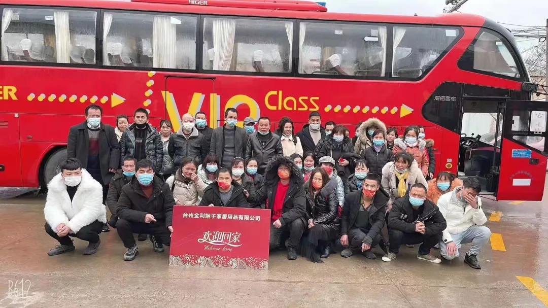 日前,正逢外来职工返工返程高峰期,台州市黄岩区高桥街道的台州市金利娴子家居用品有限公司工会开展外来返工人员包车助企开门红行动。
