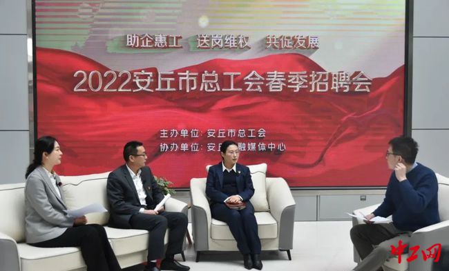 中工网讯(工人日报-中工网记者田国垒 通讯员薛辉 葛红普)虎年春来早,就业正当时。日前,山东省安丘市总工会举办了“助企惠工·送岗维权·共促发展”2022年春季招聘会。本次招聘会采取线上网络直播形式,现场共发布33家企业的近200个岗位,观看人数达到6.8万人次。