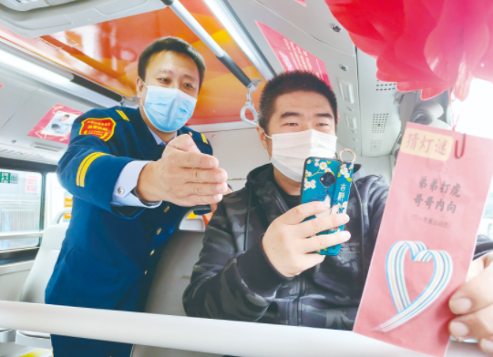 市公交集团第三客运公司175路劳模驾驶员冯会清(左)布置主题车厢。 元宵节当天,市公交集团三公司工会、四公司工会为全体干部职工送上了热腾腾、香喷喷的元宵,把团圆顺利、美满安康的祝愿传递到大家心中。两家公司工会为积极做好元宵采购工作,提前统筹准备,精心选择了不同口味和馅料的元宵,第一时间送到公司食堂和各基层车队,让职工们感受到温暖关怀,激励大家齐心协力做好运营工作。职工们纷纷表示,会带着这份节日温暖坚守一线,保障市民乘客安全出行。