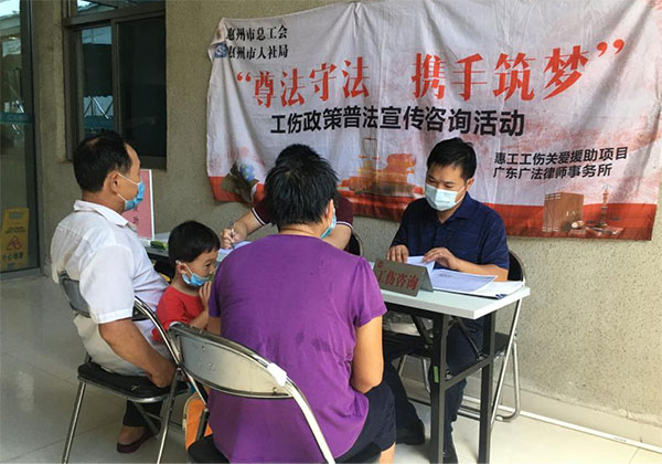 近年来,惠州工会结合疫情防控有关部署,开展线上线下普法宣传152场次,提供法律咨询7752人,发放宣传资料47865份,惠及农民工31706人;通过现场受理劳动争议案件181件,其中涉及拖欠农民工工资案件131件,为农民工追回经济损失1351.7万元,办理法律援助案件66件。