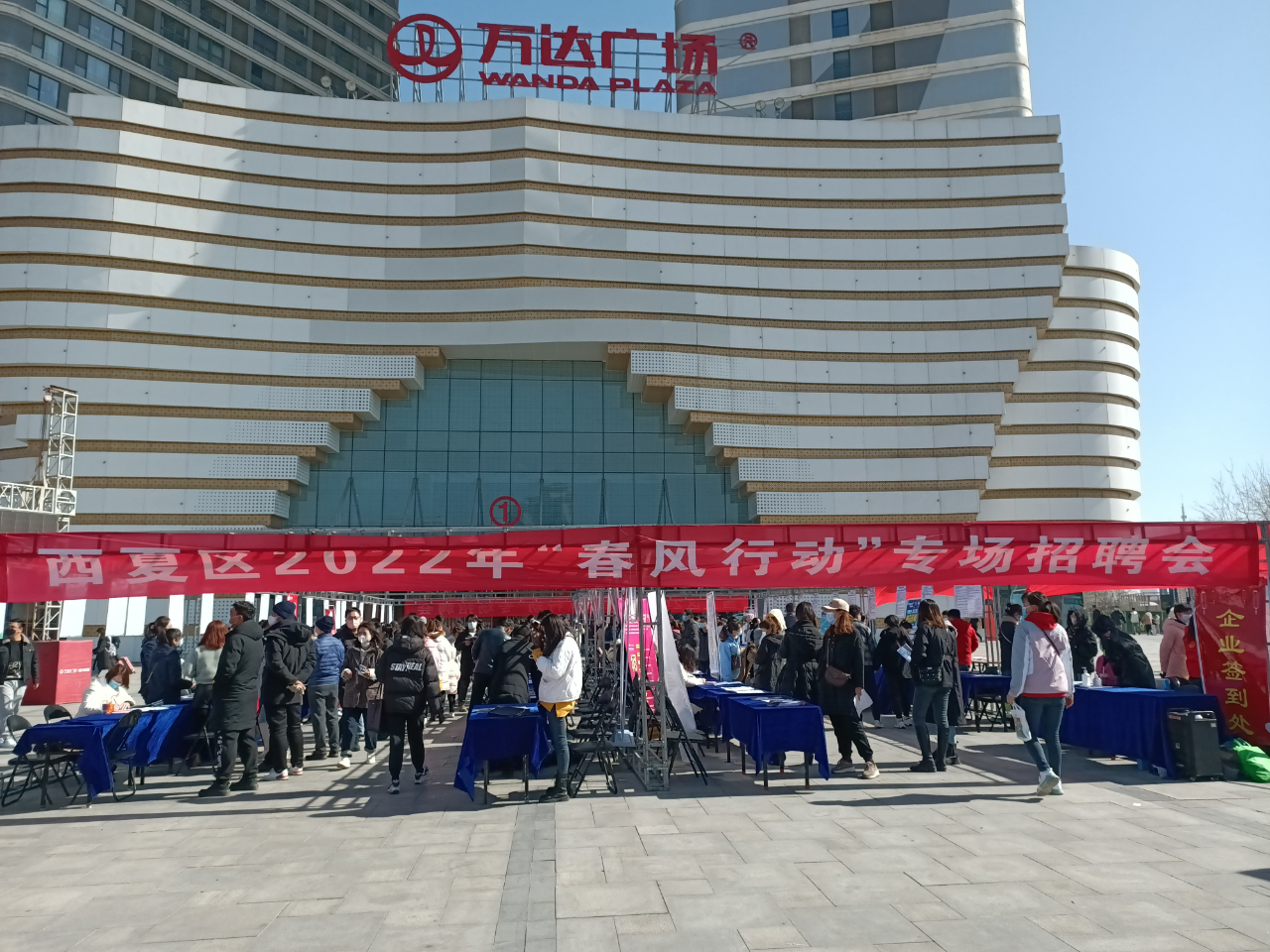 宁夏回族自治区银川市西夏区总工会联合人社局、就业创业和人才服务中心、团委、妇联、工商联、退役军人事务局等单位,在西夏万达广场举办了以“工会送岗位·真情促就业”为主题的西夏区2022年“春风行动”专场招聘会,为高校毕业生、有转移就业意向的农村劳动力、返乡返岗的农民工,特别是脱困人口、农村低收入群体等提供暖心就业服务。