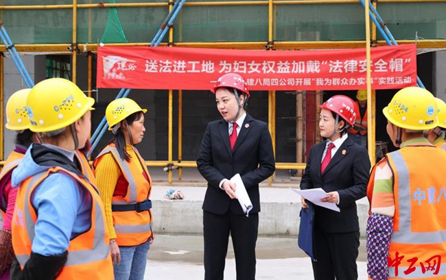 中工网讯(工人日报-中工网记者李国 通讯员吴波)“1978年,《宪法》就增加规定男女同工同酬这一条款。”3月5日,在“三八”国际劳动妇女节到来之际,重庆市九龙坡区人民法院的法官走进中建八局九龙坡实验二小迁建项目为工地上的女性农民工普及法律常识,为妇女权益加戴“法律安全帽”。